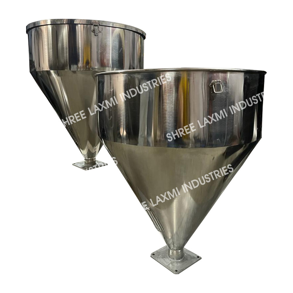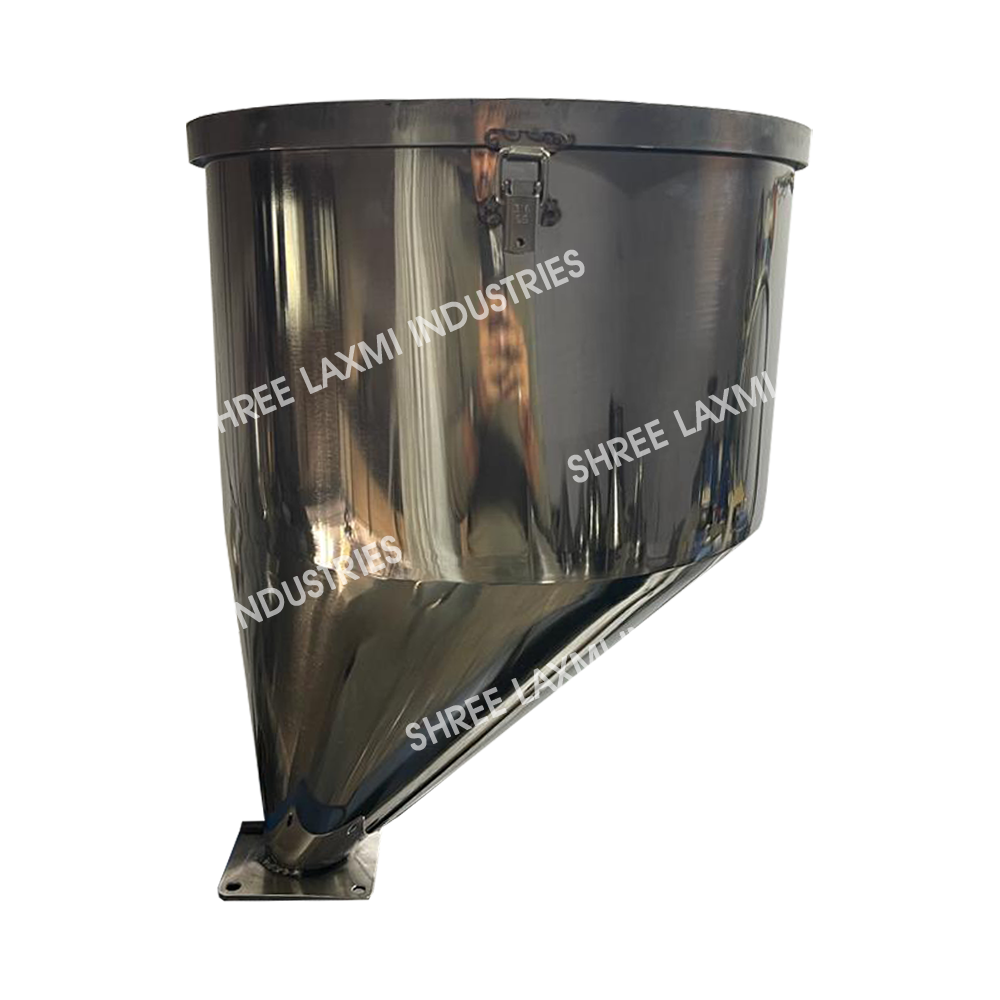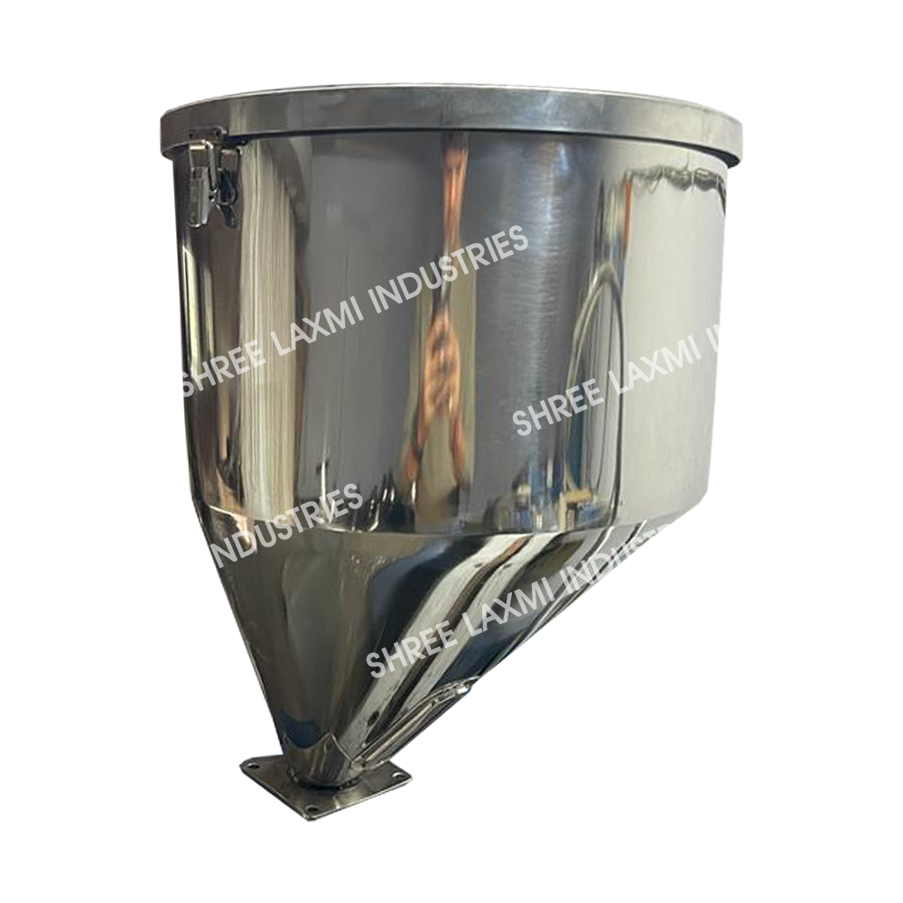 Fabrication Detail: Upper part of hopper is a rectangular shape with curved surface, and bottom part is made with narrow oval shape. Internal finishing of hopper given mirror and external finishing of hopper is matted or as per customize requirement.
